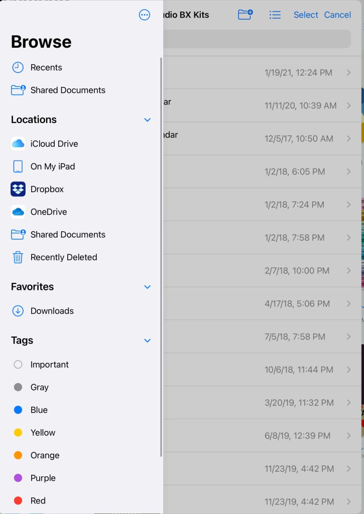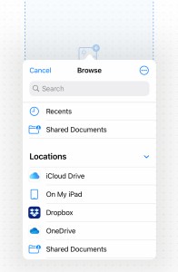 When you click on “import”, you’ll get a list of places to grab your file. (If you don’t see this screen, press “< ” on the top left side of the box until you see “< browse”. Then press that.)