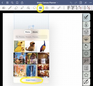 A box will pop up and will usually show your most recent photos on your device. If your stickers are saved on your iPad, you can scroll into you find it and just click it to add it to the page.