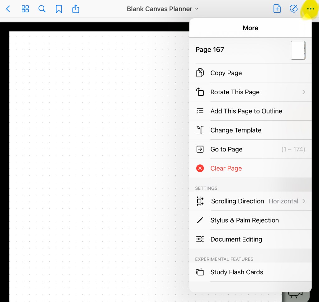 Instead of the traditional copy-paste function here, GoodNotes has a duplicate button. If you press duplicate, the copied page will appear to the right of the page you just copied. From this point, you can drag and drop that page to the location you want it to be.