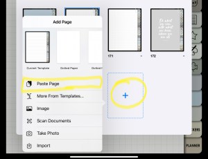 To paste the page, you will need to go into multi-page view again and press the + button. Select paste page from the pop up menu to add it to the notebook, then drag and drop it over to where you want it.