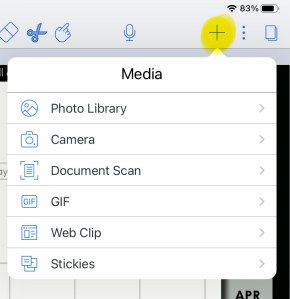 You also have options to take a photo with your camera, add a gif from Notability’s gif library, add plain sticky notes, and selecting a clip from the internet.