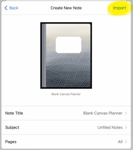 To import your planner into the app, click on the import icon in the top right corner (highlighted in yellow).