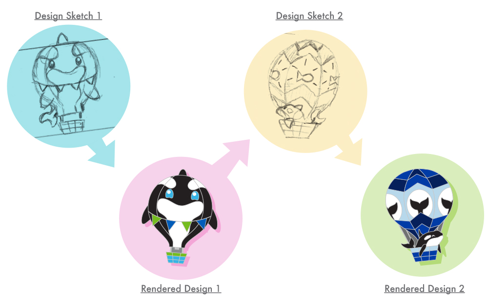 I was asked to help create a series of pins for the newly developed SeaWorld Pin-Trading Program. The pins needed to appeal to all ages, and the design needed to stand out on a lanyard despite being sized at 1.5 inches. I was given a list of animals and a theme: hot air balloon.