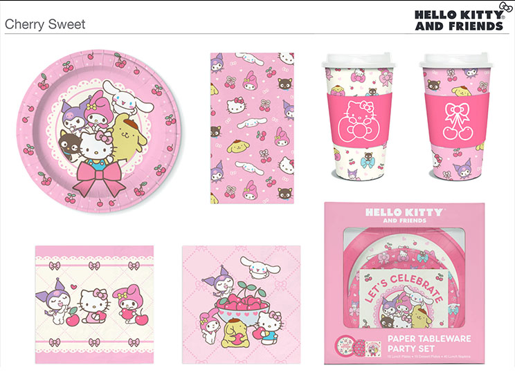 A large part of my job is designing stationery, paper tableware, and gift collections for TJ Maxx. We were very excited to be adding Hello Kitty and Friends designs into our lineup.