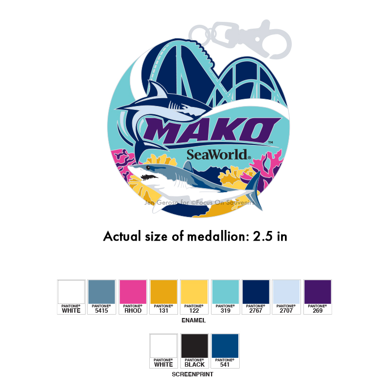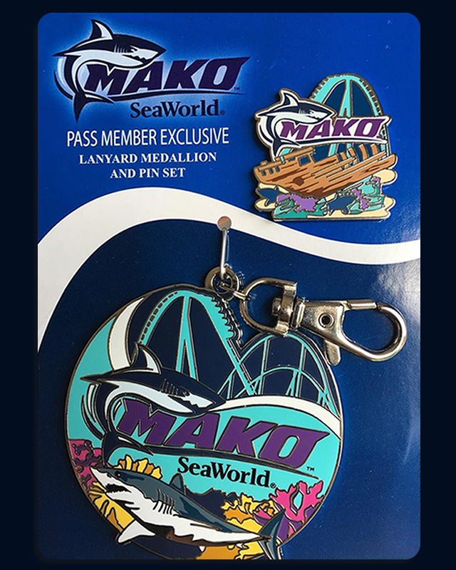 SeaWorld Orlando was opening a their new Mako rollercoaster and needed merchandise for the launch. I was tasked with creating a pin and medallion set with a matching lanyard.