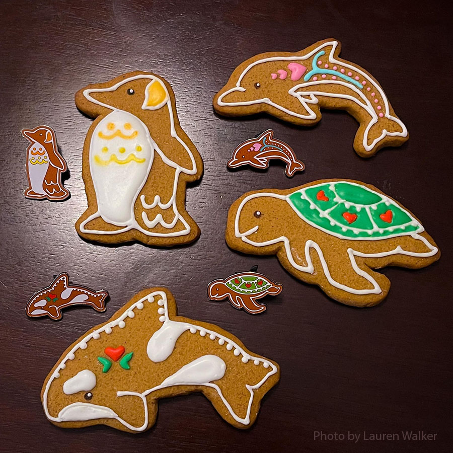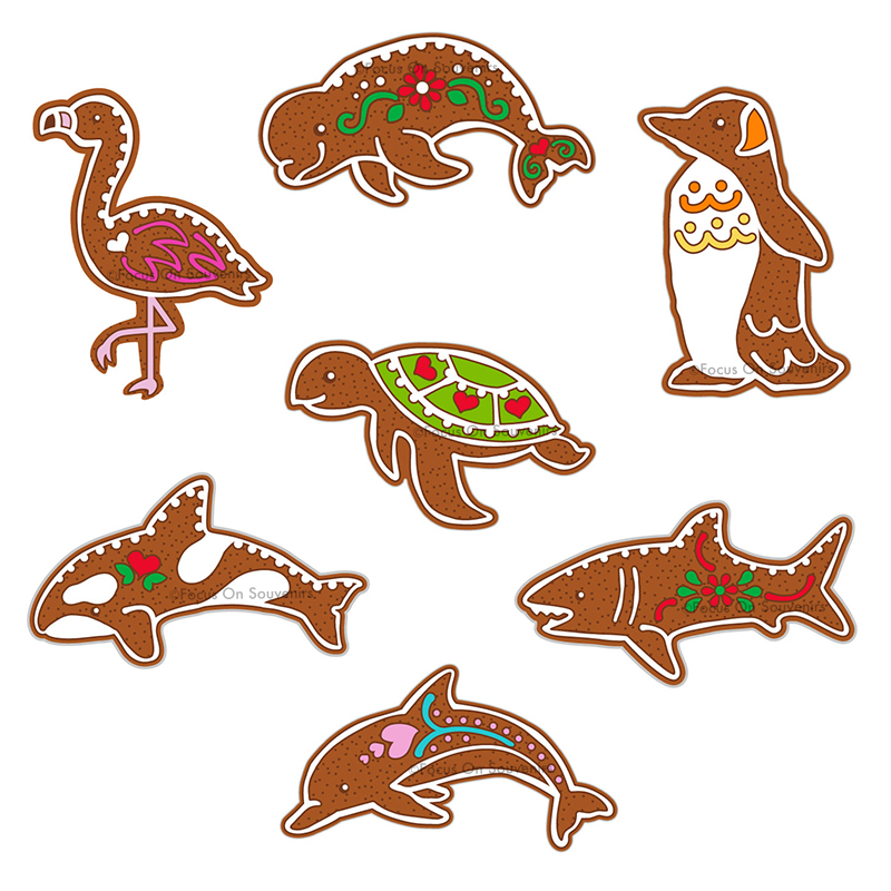 My Role: The Sales team thought a gingerbread theme would be cute, so my job was to come up with a design that would suit all three locations. I decided on a traditional look, using those decorative swirls and dot accents to give the animals some flair and color. For the Williamsburg location, I used gingerbread men with cultural clothing to represent the countries. I also designed the packaging.